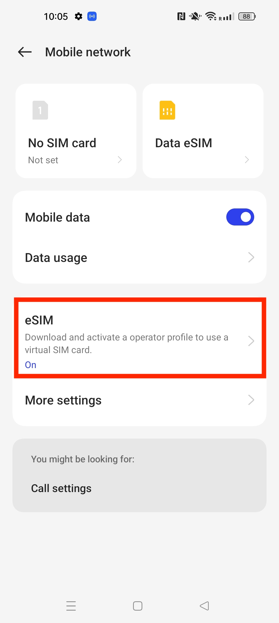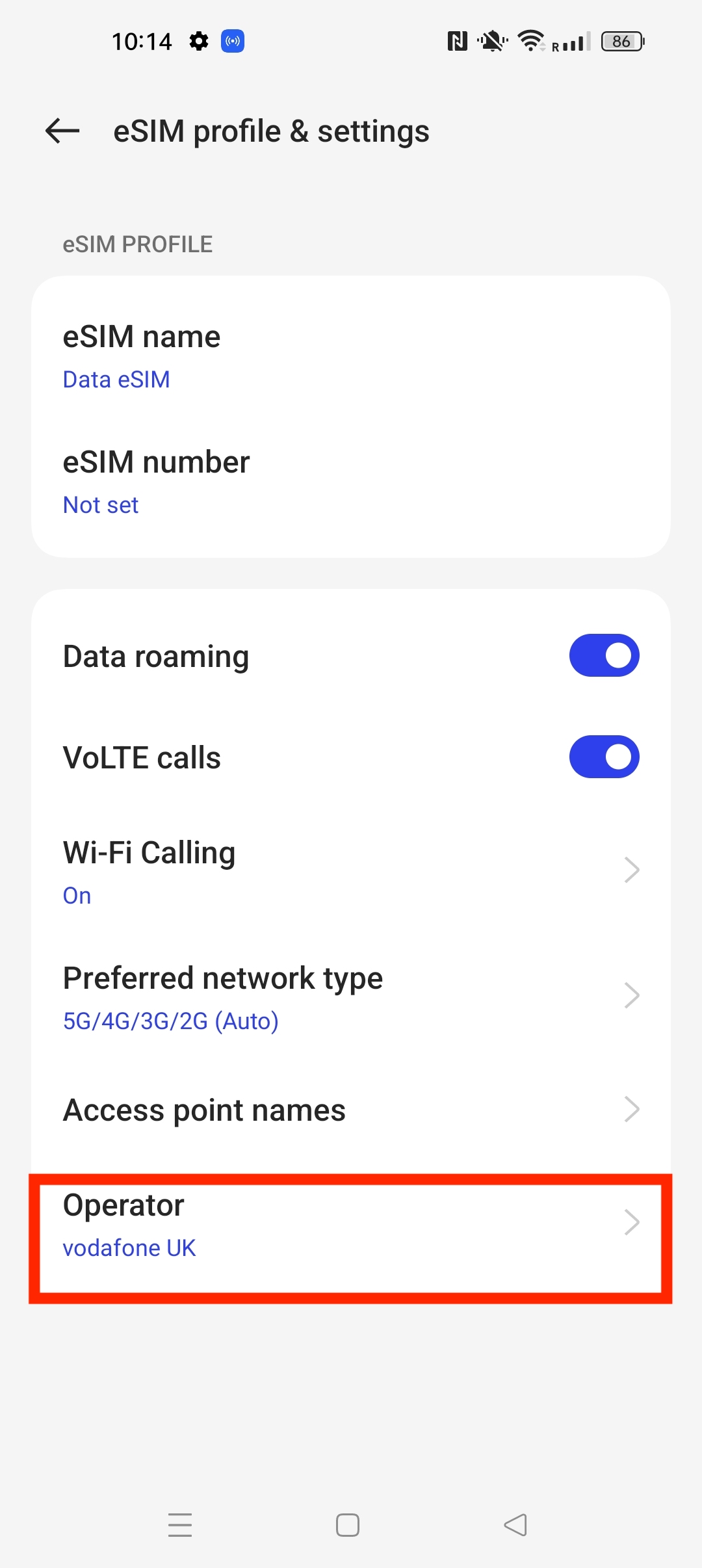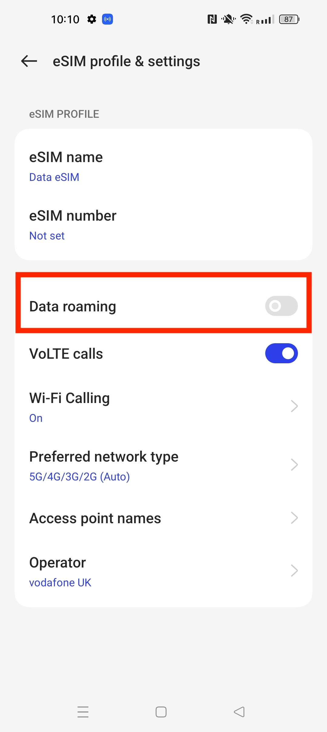 10. Make sure your Data roaming is on, or the eSIM will not work. You can do this by Going back into Mobile Network > Data eSIM.