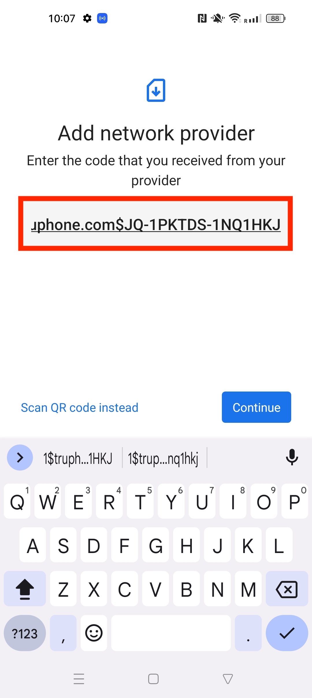 6. Press "Next" > Scan the "QR Code" given through your eSIM Bundles account.