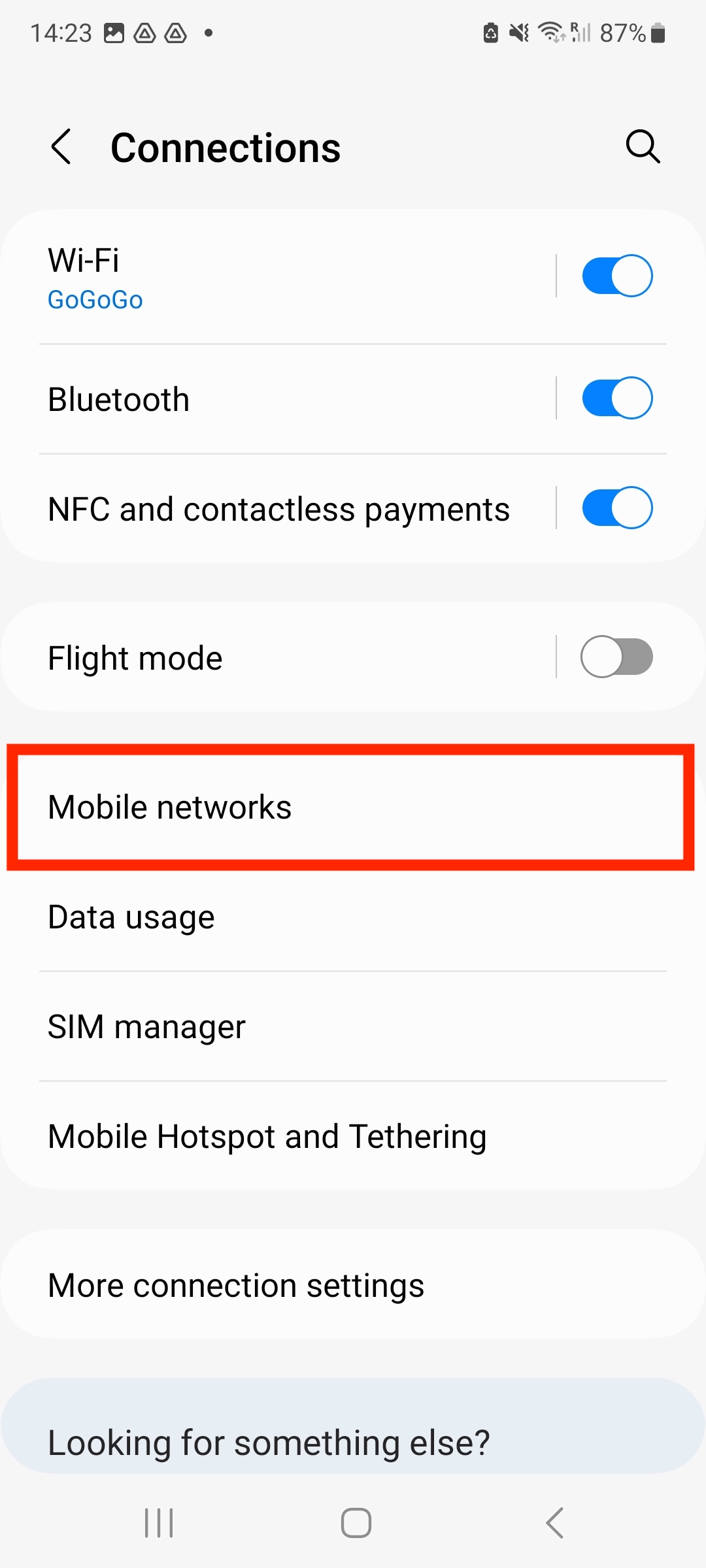 7. Once this has been completed, go back into "Connections" > Mobile Networks.