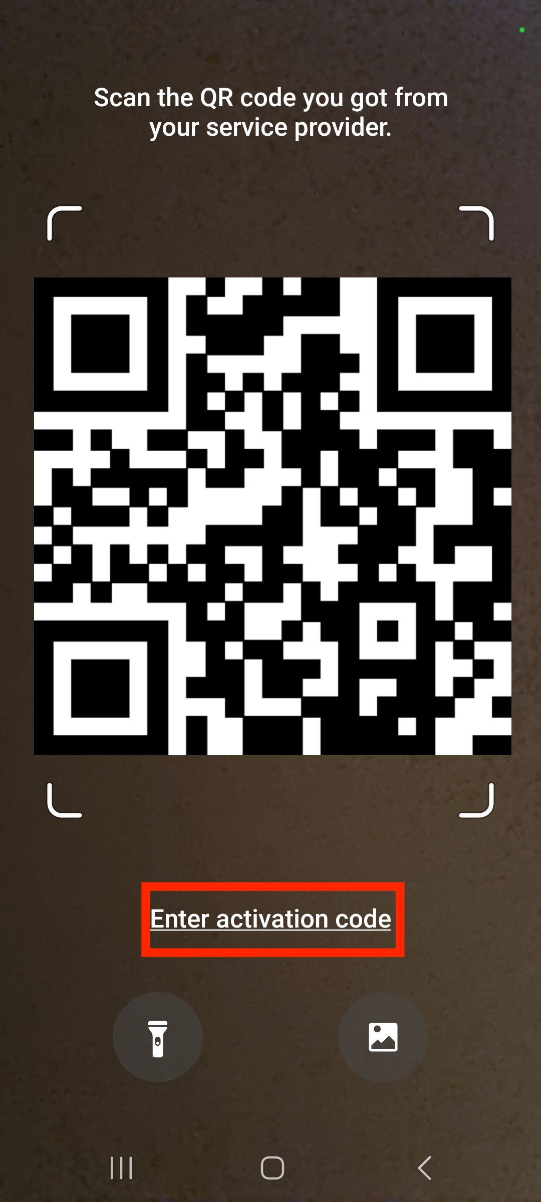 4. Select the option "Scan QR code from service provider" > "Enter Activation Code".